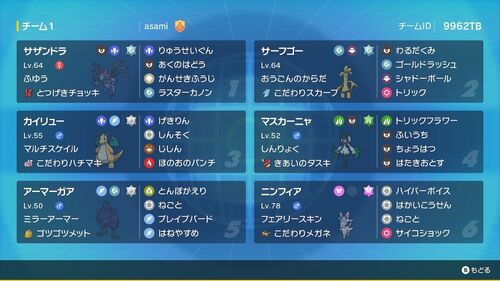 今回はポケモンsvランクマ初日に27‐11の戦績でマスター達成した構築を紹介していきたいと思います! 現環境では少し珍しい軸がサイクルを重視した構築なのでサイクル戦が好きな方には特におすすめの構築です! レンタルと対戦動画 採用順と構築経緯 使用個体…